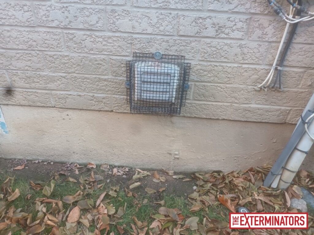 - Sealing of one exterior wall vent using a galvanized steel cage