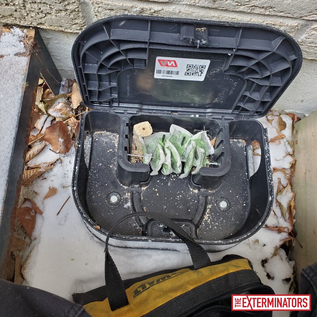 On the first visit, interior mouse treatment was completed using tamper-resistant bait stations placed in areas of observed activity. All rodent control work was performed by a licensed exterminator in accordance with Ontario Ministry of the Environment guidelines. Activity levels were monitored during follow-up visits.