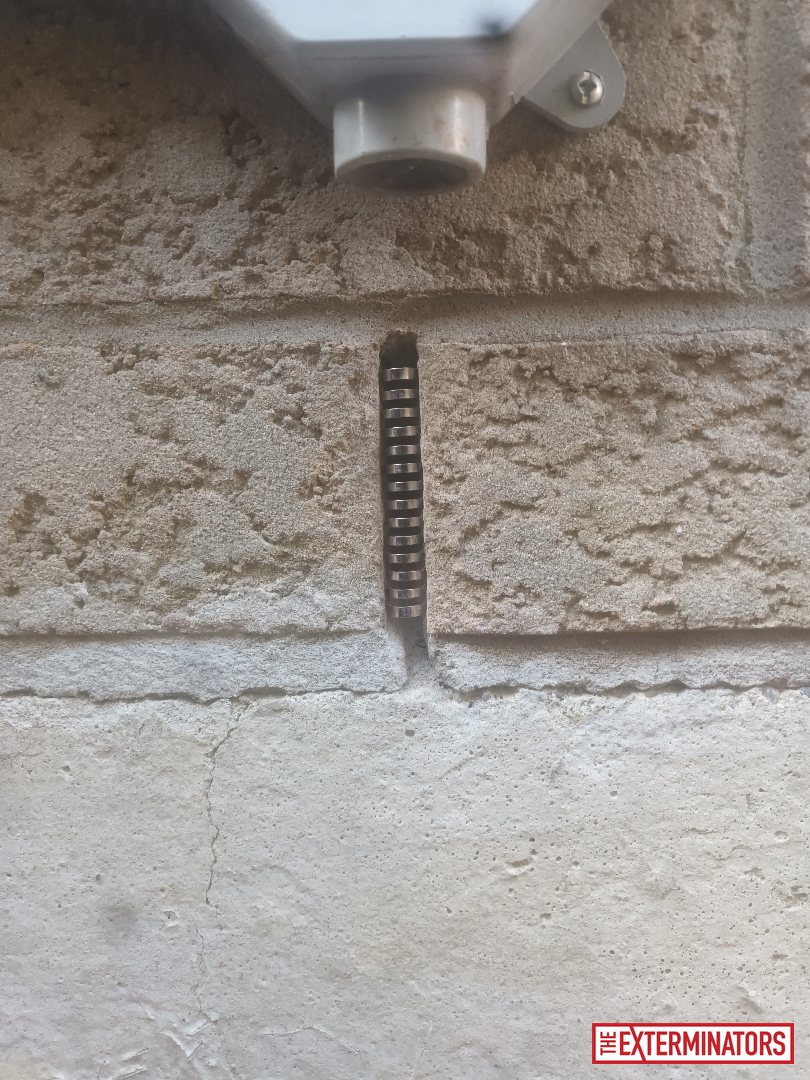 During the initial inspection, our technician identified signs consistent with mouse activity inside the home. Exterior inspection identified several potential rodent entry points, including unprotected weep vents and an exterior wall vent. Gaps along the foundation line were also observed where rodents could potentially access the building envelope.