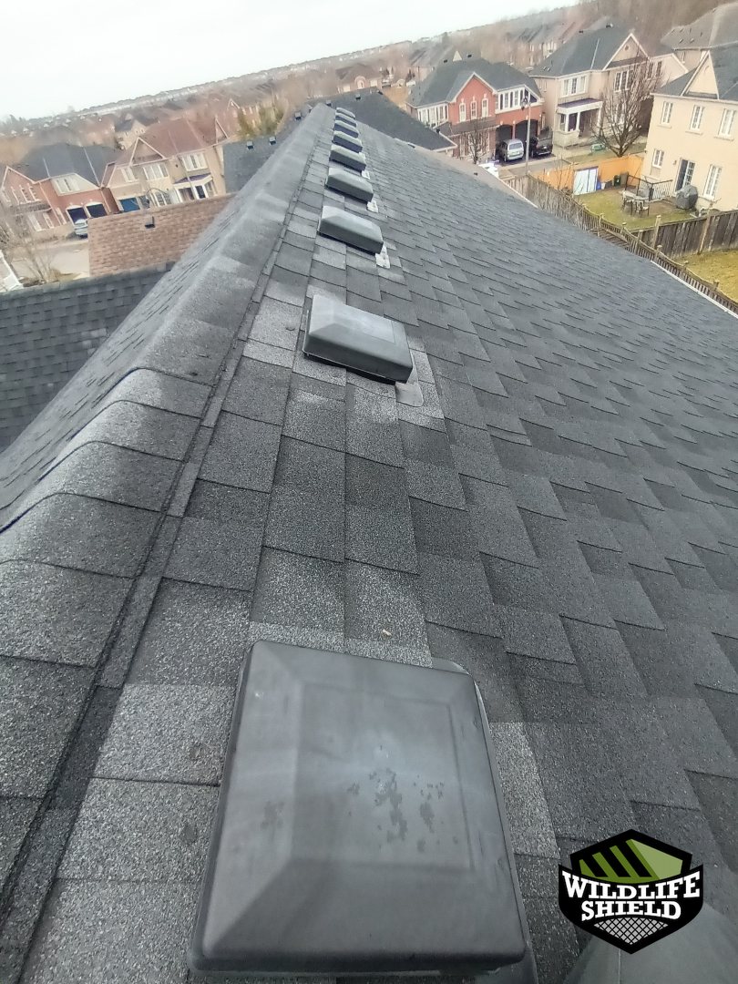 Our team completed a two-visit squirrel removal and exclusion service at a detached home in Ajax after early morning attic activity was reported. Inspection confirmed roof-level entry through a damaged vent. Humane removal was completed using a one-way door system, followed by permanent sealing and full roof vent protection. A final visit confirmed resolution with no further activity.